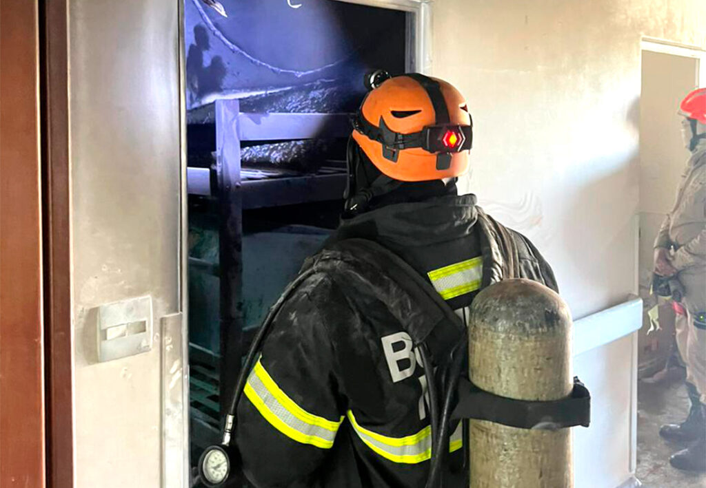Ele concluiu informando que “o quarto ficou bastante danificado, queimou os equipamentos que estavam dentro, o fogo ficou confinado lá. Ninguém se machucou”.